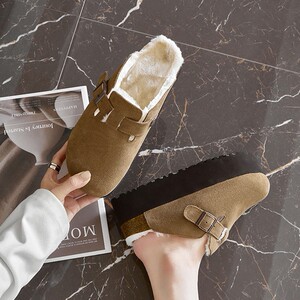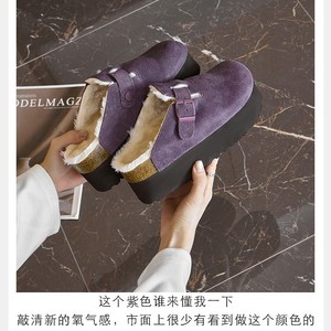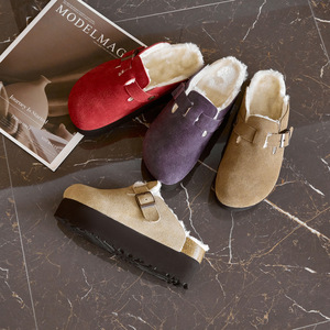 羊绒毛勃肯鞋女真皮厚底博肯包头毛毛拖鞋外穿秋冬加绒雪地靴棉鞋