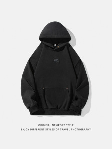 重磅美式400G连帽卫衣2025春季款字母刺绣复古宽松情侣帽衫外套q