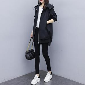 有里布2025春秋韩版卡其色宽松休闲连帽风衣女中长款黑色气质外套