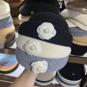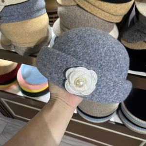 2025新款复古百搭优雅留洋千金帽法式赫本风黑色羊毛小礼帽子女款