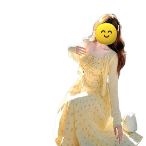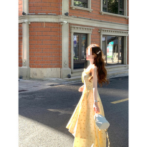 2025夏季新款法式黄色气质吊带连衣裙女夏日绝美小个子收腰长裙潮