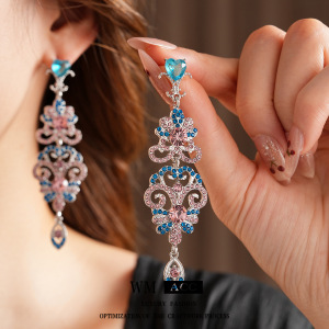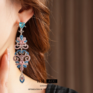中古vintage镶钻流苏耳环轻奢高级感耳钉复古宫廷风精致百搭耳饰