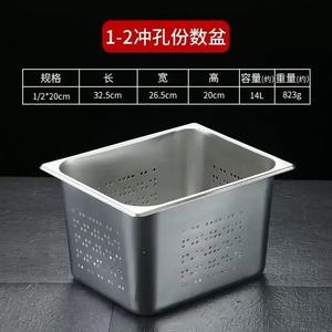 不锈钢冲孔份数盆长方形过滤盆带孔沥水餐盆电解自助餐保温台商用
