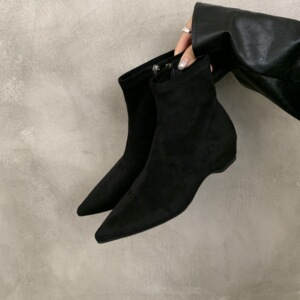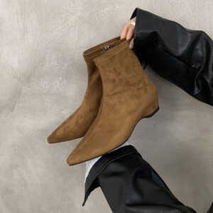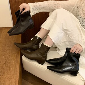 小众复古粗跟尖头棕色瘦瘦靴短靴女2025新款春秋季单靴法式小踝靴