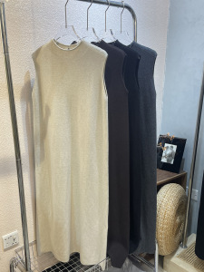 内搭裙子秋冬简单大方无袖新款背心圆领针织复古风气质长裙连衣裙