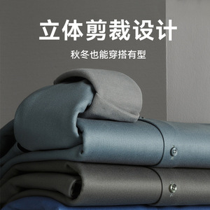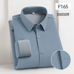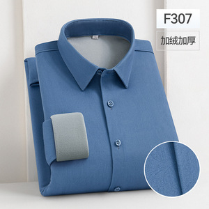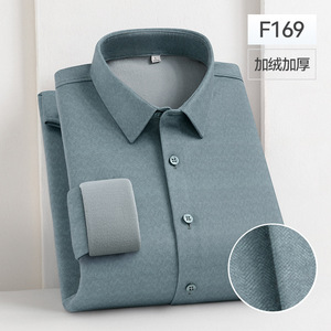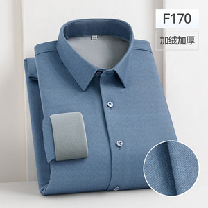 男士加绒衬衫长袖冬加厚男装商务休闲无痕高档暗花新款保暖衬衣男