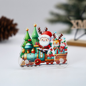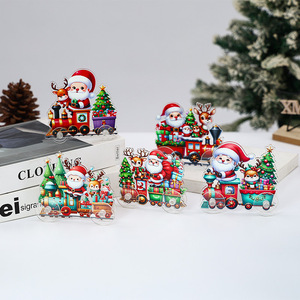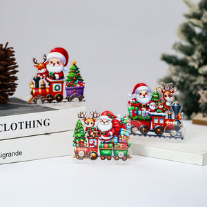 跨境圣诞节亚克力装饰品圣诞老人摆件派对小火车节日创意摆件批发