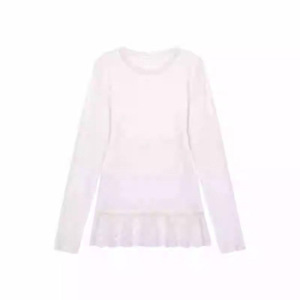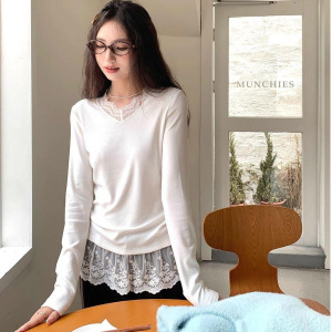 秋冬miu系韩版圆领蕾丝边拼接宽松减龄百搭长袖打底T恤女甜美上衣