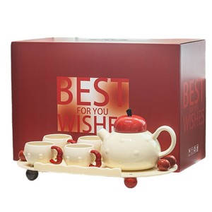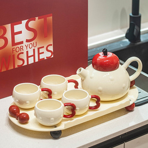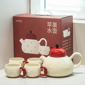 奶油色苹果水具(1壶4杯1奶油色托盘)礼盒装