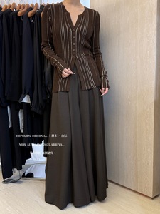 【WOW】法式高级感V领条纹针织衫小众气质修身上衣(含23%羊毛)
