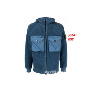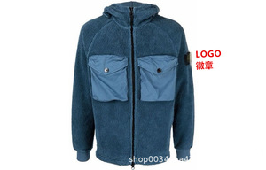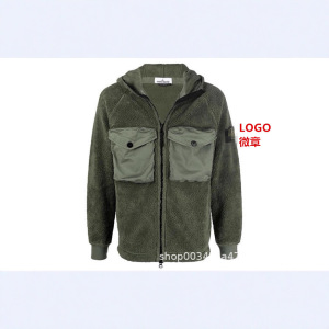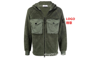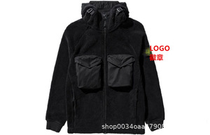 跨境 stone 石头FW经典LOGO徽章纯色夹克秋冬羊羔绒机能工装连帽