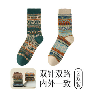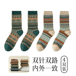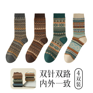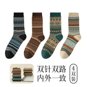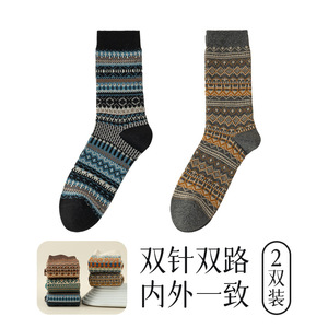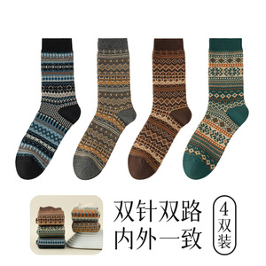 英伦风双针双路袜子男士复古配马丁靴纯棉抗起球无骨舒适中筒袜秋