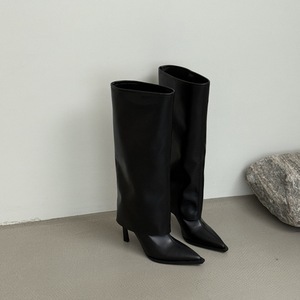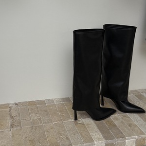 慢西西秋季新品2025骑士靴裤管高级感显瘦尖头辣妹不过膝细跟长靴