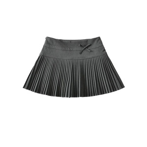 秋冬新款高腰蝴蝶结装饰半身裙女学院风褶皱防走光A字短裙纯色