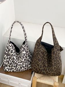 韩国慵懒风豹纹单肩包简约时尚帆布单肩包大容量托特包复古百搭秋
