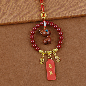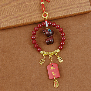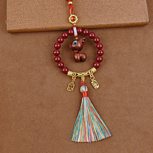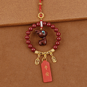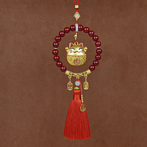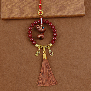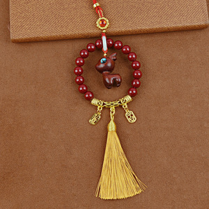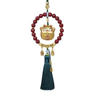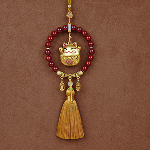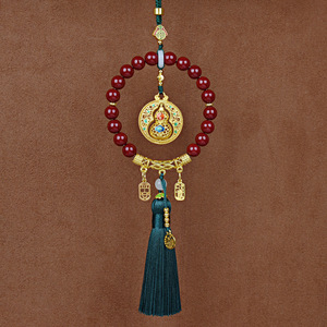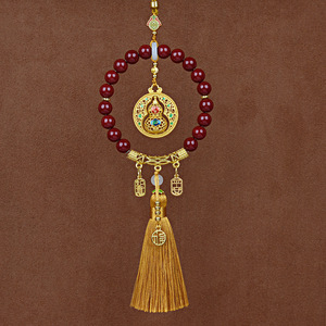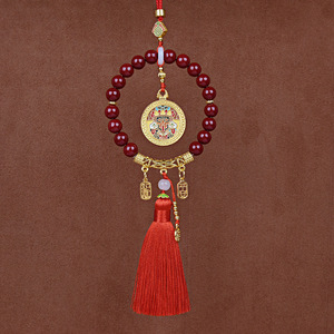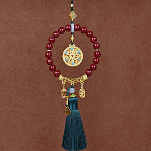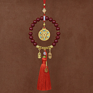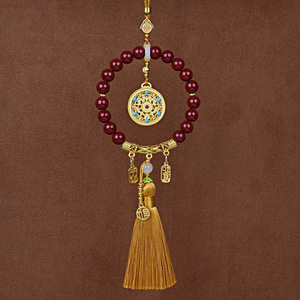 新款朱砂圈五福圆满汽车挂件车载罗盘后视镜平安如意扎基拉姆挂饰