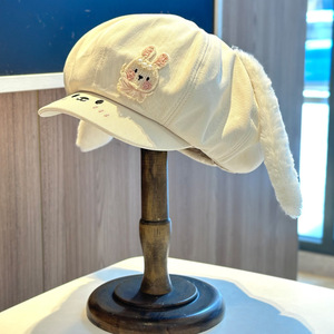 2025新款可爱卡通兔子八角帽子女秋冬时尚保暖萌妹子长耳朵鸭舌帽