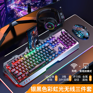 机械手感-银黑色蓝光【无线可充电-旋钮版】+无线鼠标+蓝牙耳机-否-104键-官方标配
