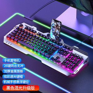 机械手感-黑色升级版【金属面板/手机支架/混光】+鼠标-否-104键-官方标配