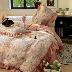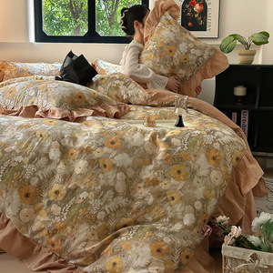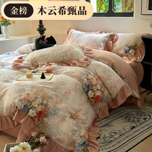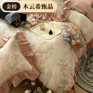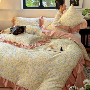 韩版法式荷叶边纯棉全棉双层纱四件套复古赫本高端奢华亲肤床用品