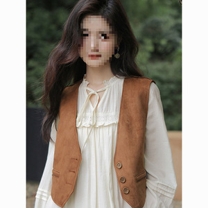 D6X棕色波西米亚马甲背心女西部牛仔坎肩美式百搭大西北新疆旅游