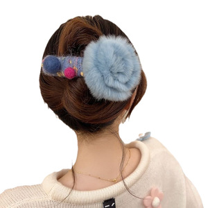私藏玫瑰~复古毛绒发夹女后脑勺秋冬盘发抓夹大号简约一字鸭嘴夹