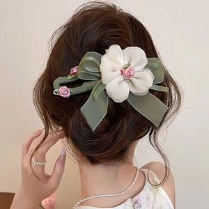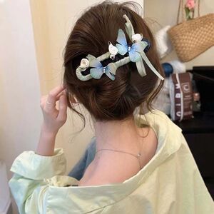 春夏撞色蝴蝶结发夹女后脑勺2025新款气质大号盘发鸭嘴夹头饰发饰