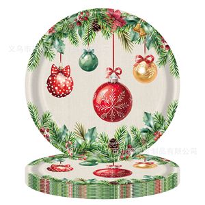 跨境圣诞节一次性餐具套装纸盘纸杯餐巾纸圣诞节派对装饰必备用品