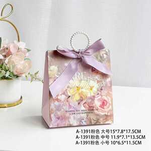 【花漾悦礼】蓝色手提盒+紫色蝴蝶结+珍珠提环