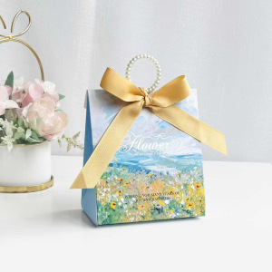 【花间悦礼】蓝色手提盒+香槟色蝴蝶结+珍珠提环