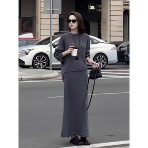 灰色针织上衣+半身裙【套装】 【高品质】