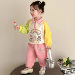 女童卡通春季套装儿童春秋新款撞色鸳鸯袖洋气宝宝多巴胺两件套潮