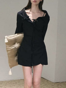 OAKMOO/ "日记的那一页"莱赛尔纯欲斜肩修身衬衫连衣裙女掐腰裙子