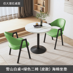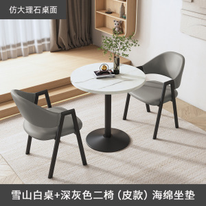 仿理石+浅灰色一桌两椅【皮革款】-优质