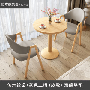 木纹款+浅灰色一桌两椅【皮革款】-优质