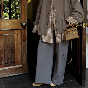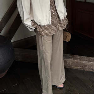 Owis 日系高级感全棉斜纹显瘦立体剪影插片松紧腰休闲裤垂感裤子
