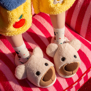 DIMIFEI 小熊棉拖可爱卡通居家室内防滑棉鞋女冬季保暖加绒厚拖鞋