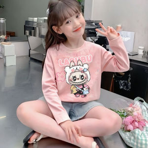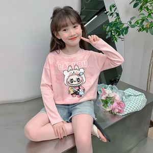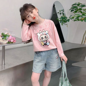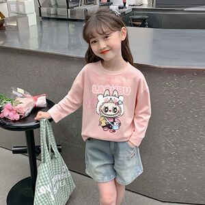 春秋季儿童T恤女孩中小童套头衫卡通小兔子休闲百搭圆领粉色上衣