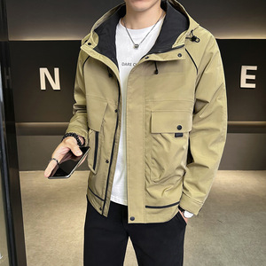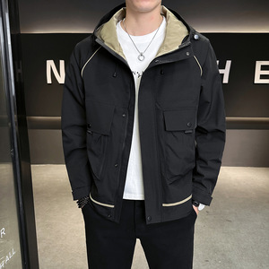 秋季新款男士时尚短款连帽工装夹克外套潮牌百搭衣服