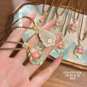 银佳银饰 足银999.9 描金珐琅葫芦吊坠 潮流 精品现货一件代发