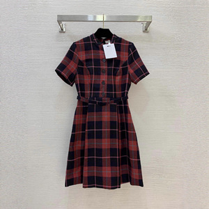 25新款深圳南油高端原单25早春复古系列翻领单排扣短袖连衣裙