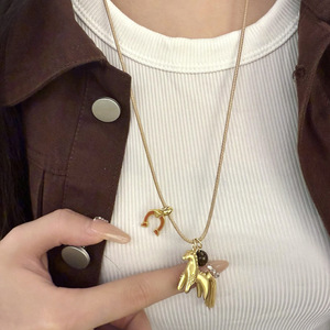 滴油石头小马吊坠项链个性时尚冷淡风设计锁骨链简约设计感项饰女