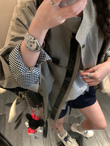短款风衣女2025春秋新款撞色拼接极简日系休闲短外套松弛感小个子