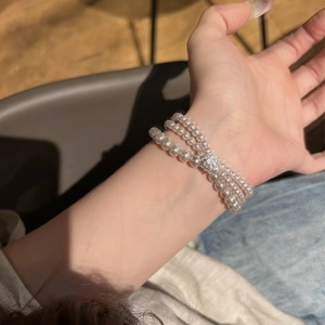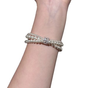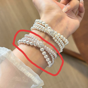 白色三层曼塔玫瑰施家珍珠手链奥白色微镶锆石手串女轻奢精致小众设计