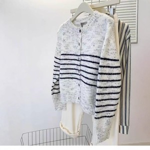 日系复古杂色羊毛条纹针织开衫女秋冬洋气时尚休闲小个子毛衣外套