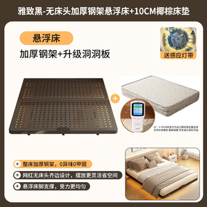 碳素钢架床+智能感应灯带+10CM椰棕床垫【高级黑】出口品质