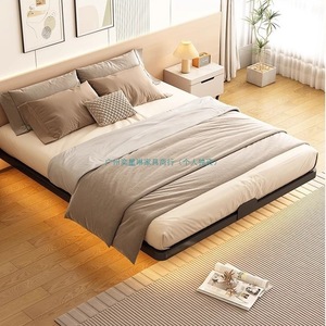 碳素钢床架+金属支撑脚+智能感应灯带【奶油白】出口品质