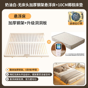 碳素钢架床+智能感应灯带+10CM椰棕床垫【奶油白】出口品质