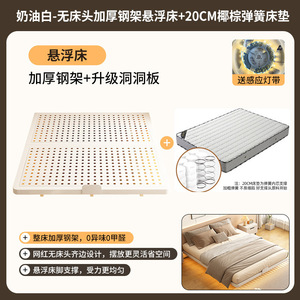 碳素钢架床+智能感应灯带+20CM椰棕床垫【奶油白】出口品质
