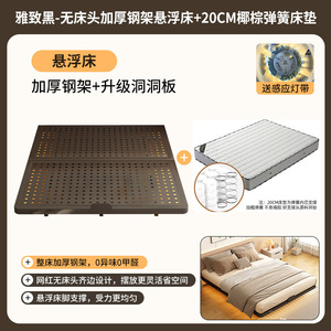 碳素钢架床+智能感应灯带+20CM椰棕床垫【高级黑】出口品质
